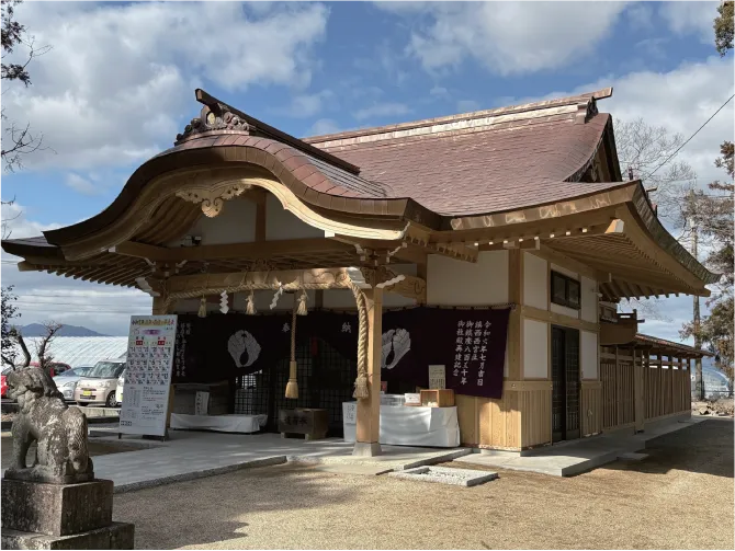 再建委員会が令和3年(2021年)2月7日に発足し、創建850年を迎えた令和7年(2025年1月)に原状復帰を目指し、新社殿が完成しました。