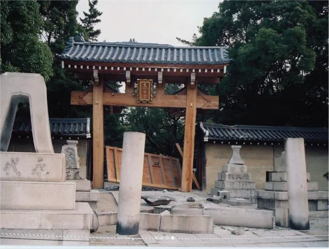 平成7年の阪神淡路大震災にて倒壊した、南門前の石鳥居をご奉納させていただき、30年ぶりに復興しました。